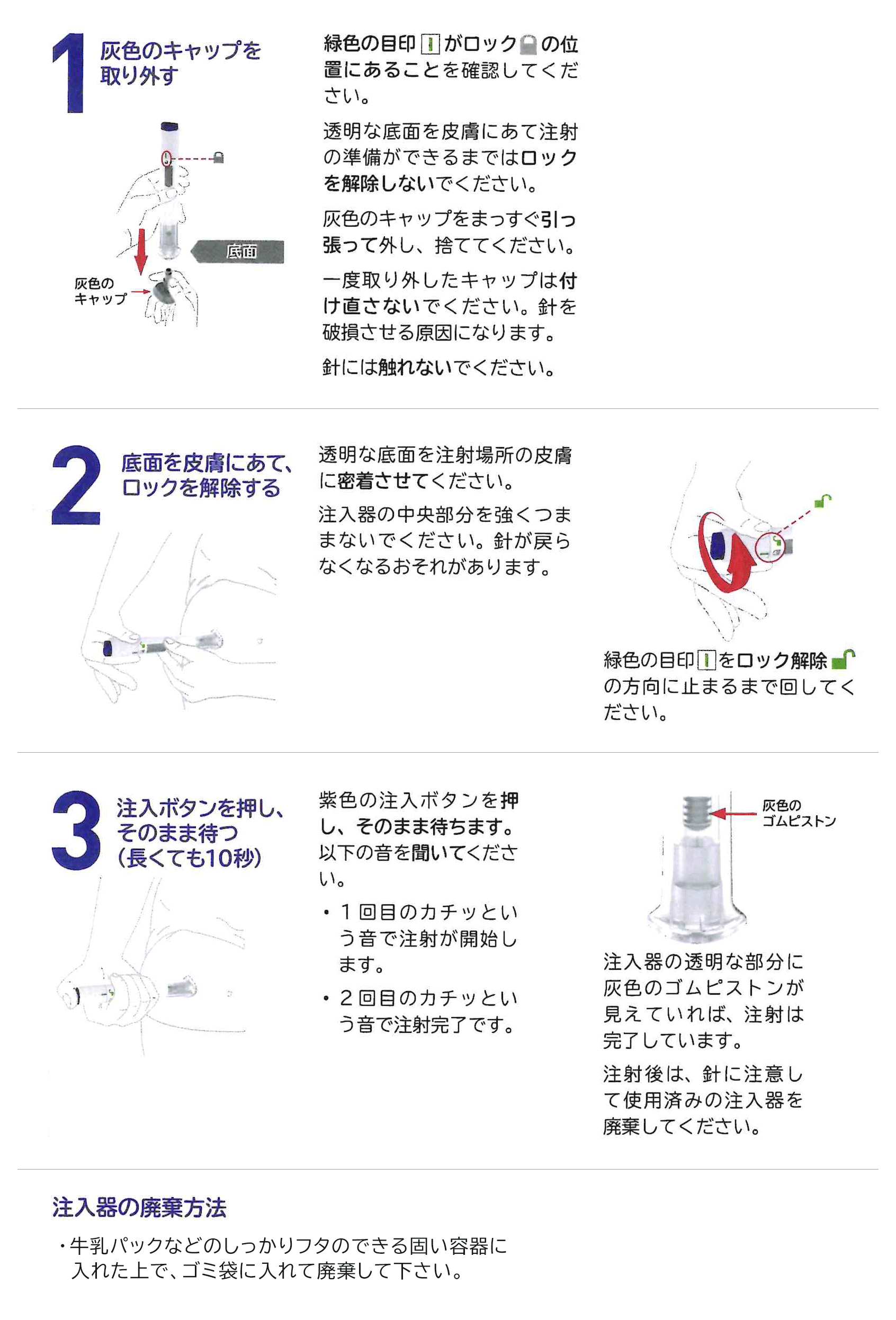 ・週に1回、なるべく同じ曜日・時間に自己注射を行います。