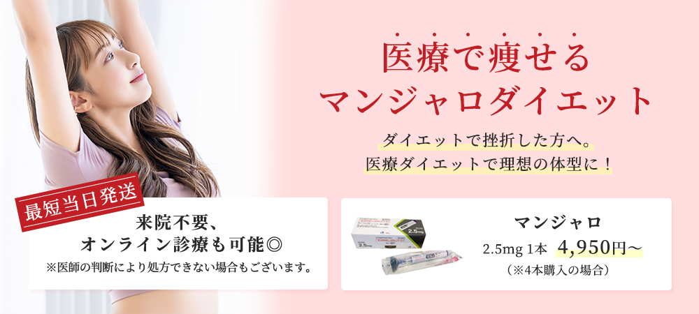 - マンジャロは、日本において2型糖尿病の効果・効能に対して承認されていますが、ダイエット目的での使用は日本では承認されていないため、自費治療となります。